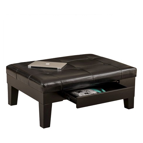 Use this versatile ottoman as a plush foot stool as an extra seat or as a coffee table and store your odds and ends in the storage drawer.